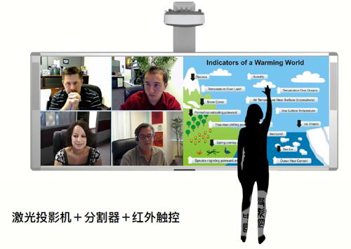 在商務(wù)會議方案中,配置的超寬屏DET-V1、3*1.2m兩用電子白板,超寬屏(16:6)、collab8組合作為會議室應(yīng)用方案,激光投影機(jī)符合人眼寬視野的視覺體驗,適用多視窗演示的會議室或特殊的數(shù)字廣告宣傳。加上多路輸入的分屏處理,能實現(xiàn)多視窗畫面,配合collab8智能無線會議協(xié)作系統(tǒng),輕松實現(xiàn)會議無界線的遠(yuǎn)程互動。