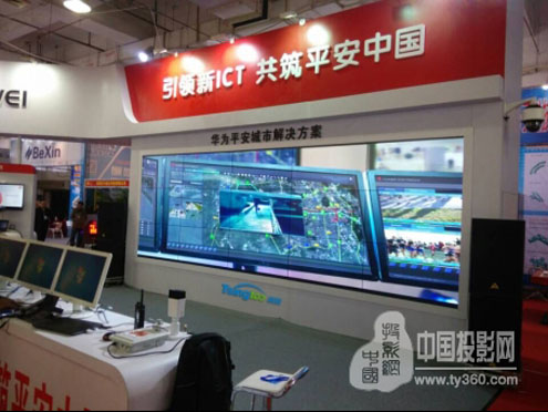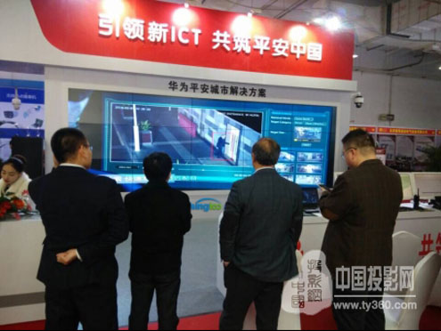 展會現場,清投視訊向華為公司友情贊助的一套3X5 3.5mmLCD拼接,竟成為現場最大規模的液晶拼接屏!這也同時展現了清投與客戶合作的誠意以及清投對安防產業的重視。