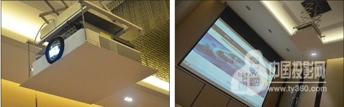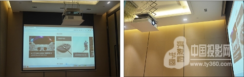 另一個(gè)小型VIP會(huì)議室應(yīng)用的同樣是索尼VPL-F720HZL配合150英寸屏幕,這個(gè)系統(tǒng)的亮點(diǎn)是投影機(jī)配備了超短焦鏡頭。在非常短的距離內(nèi)實(shí)現(xiàn)了大畫面效果,而且畫面效果非常平整清晰,表現(xiàn)出索尼在光學(xué)成像系統(tǒng)和鏡頭工藝方面的優(yōu)勢(shì)。