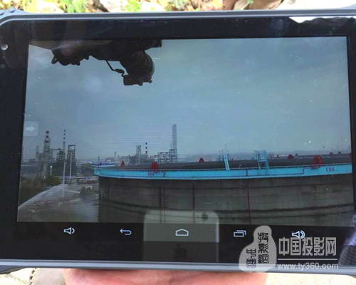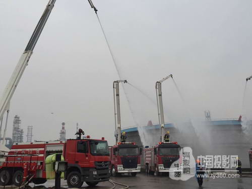 圖4:高噴車在圖傳設備的定位下對油罐進行滅火