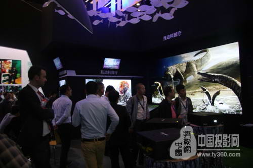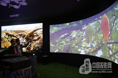 以海洋世界穹頂展示為例,現(xiàn)場工作人員介紹說,Sonnoc SNP-DSU13K高亮投影機投射出大視角的影像和圖像,給現(xiàn)場觀眾帶來了身臨其境的震撼視覺效果,浪漫的海底隧道、驚險的鯊魚表演、可愛機靈的海豚等等,“真實”的海洋世界讓觀眾可以盡享投影顯示的魅力。此外,“天外來客”全息投影、印象蝴蝶、增強現(xiàn)實魔鏡等都獲得了頗高的人氣。