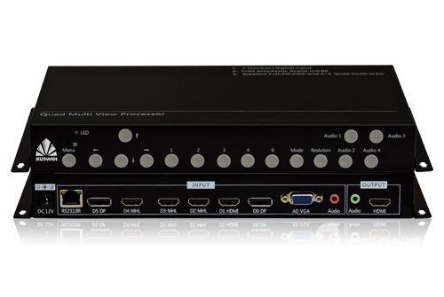 通過機箱控制,可以快捷切換至四畫面分割顯示,或選擇某一個信號全屏顯示;并可以實現(xiàn)音頻同步切換。