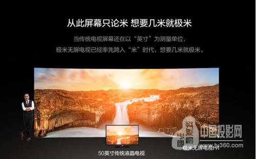 極米H1最大可投射出超6米寬的屏幕,尺寸相當于36臺50村電視拼在一起,用“米”來定義電視屏幕尺寸,對于無屏電視來說,這一定義方式更為直觀,易于理解,拉近了產品與用戶的距離。值得一提的是,H1無屏電視將亮度提升至900流明,播放效果可支持白天觀看。