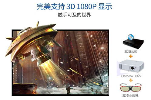 奧圖碼HD27支持新HDMI1.4a藍(lán)光3D格式,與娛樂設(shè)備3D藍(lán)光機(jī)、XBOX360、PS3完美搭配,佩戴3D快門眼鏡即可欣賞逼真3D高清大畫面,玩轉(zhuǎn)3D游戲,體驗身臨其境的震撼!