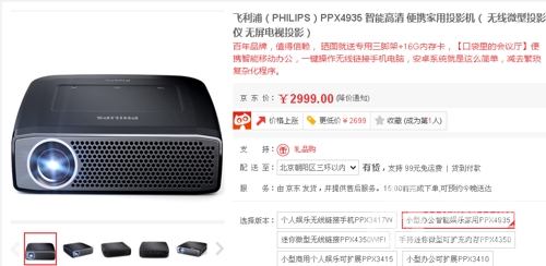 飛利浦PPX4935無線家用娛樂投影機 市場售價:2999元