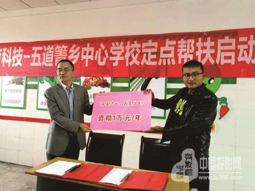 在“愛的奉獻”的旋律中,長虹教育科技現場與涼山州教育局簽訂了五道箐鄉中心學校簽訂了定點幫扶協議,同時,還資助涼山州彝族大學生讀書期間的所有費用。五道箐鄉中心小學校向捐贈的長虹教育科技、四川文軒科技、成都瑞德利科技、四川博瑞星云等企業贈送了“精準扶貧,心系涼山”、“關愛莘莘學子,情系涼山教育”的錦旗。
