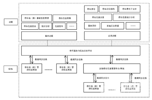 包括系統組成和系統設計:系統組成明確了系統結構圖,由停車場(庫)管理系統和停車服務與信息共享平臺組成,停車場(庫)管理系統由各個停車系統廠商開發,接入停車場設備并且完成業務管理,同時根據標準數據格式和接口協議,與平臺進行數據的同步交換;停車服務與信息共享平臺則包含信息采集、查詢、統計分析和發布的基本功能,以及停車誘導、泊位預約、電子支付、信息共享等應用功能。具體系統結構請見圖1。