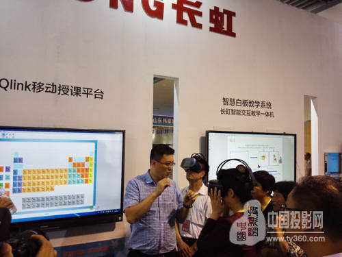 展會現場,長虹不僅僅展出了教學解決方案,在智能教育上更是大放新品。智慧教育硬件方面,長虹全新升級的智能交互一體機,尺寸涵蓋55吋到84吋,帶OPS斷電保護功能和護眼功能,更好地滿足實際教學應用,對幼教領域也有專門的定制機型;智慧教育軟件方面,長虹一體機上的長虹自主研發的電子白板軟件、Qlink移動授課軟件、遠程教學觀摩平臺等,堪稱國際一流;依托智能平板、平板電腦、 智能電視產品,基于大數據挖掘分析應用的長虹“啟課”智慧學習云平臺,以以知識點為核心脈絡,全程跟蹤學習的學習過程和老師的教學過程,利用大數據的分析和科學的評估模型,讓教師有針對性的調整教學內容,有目的嘗試新型的教學模式,也是頻頻獲得好評;在前沿科技方面,長虹帶來了超大屏電容觸摸機和教育VR設備,玩轉了觸摸和虛擬各種高端設備,無與倫比。裸眼3D展臺前,吸引了不少參觀者,通過裸眼3D電視把我們的教學的內容進行展示,讓學生身臨其境的理解教學的內容。