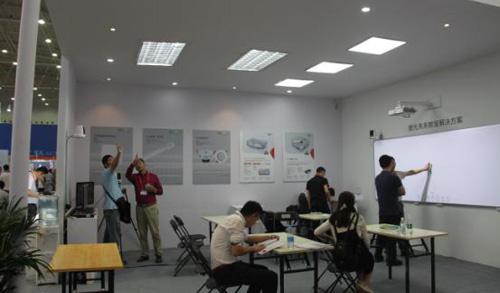 至于未來教室的室內照明方面,則由榮基能亮的智能平板燈和智能筒燈組成,分為三組不同的控制區域,可通過手機或遙控器控制不同組別燈的開關。