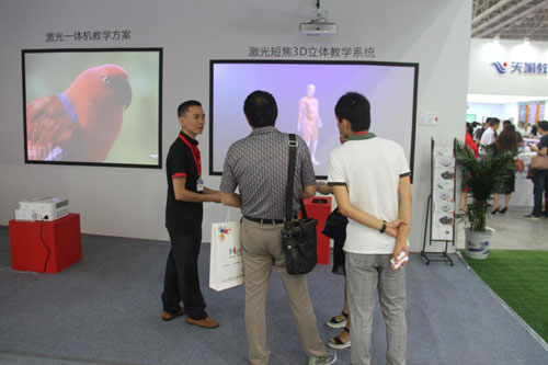 此外,本次展會還展出了DET最新出品的科教激光一體機DET-PCP以及DET-PCX。“激光一體機教學方案”均采用投影機直接投影白墻的方式來體現其便捷的功能。