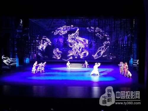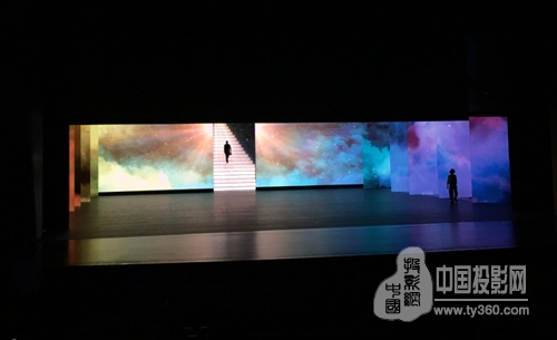 舞臺正前方的矩形紗幕投影,將整個舞臺包括其中,整體視覺感更強烈