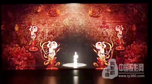 此次舞臺的主背景是一個可開合的20*9米LED大屏,舞臺兩側各5塊4*9米LED屏,大后方有16*9米的23層臺階,以及舞臺正前方一個矩形結構拱門。面對復雜的舞臺結構,如果只運用LED舞美視頻,很難呈現包裹式視覺效果,因此設計團隊采用LED舞美視頻、地屏投影、紗幕投影以及配合可開合大屏呈現的動態影像相聯動的方式,打造出最完美的視覺盛宴。