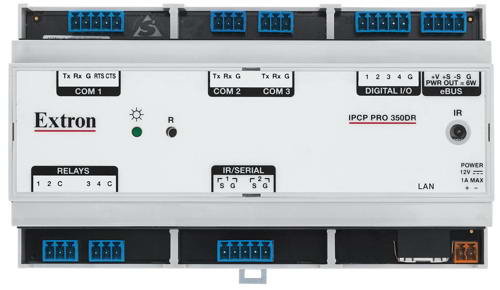 Extron 電子很高興地宣布 IPCP Pro 350DR 現已開始供貨。這是高性能 DIN 導軌安裝型控制處理器,設計在中型應用環境中進行集中式視音頻控制。和所有 IP Link Pro 系列控制處理器一樣,它采用了高級安全標準和千兆以太網,確保了在標準網絡架構上和多個 TouchLink Pro 觸摸屏兼容。IPCP Pro 350DR 可與 Extron LinkLicense 配合使用,能進一步增強 Extron Pro 系列控制系統的功能。這款控制處理器非常適合在視音頻系統中控制多個設備和信號類型,同時還能在自動化系統中靈活地進行 DIN 導軌安裝。