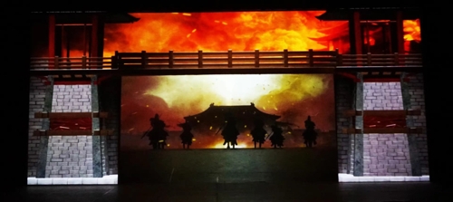 由陜西省韓城市舉辦的大型民俗舞臺(tái)旅游劇——《韓城人》,于2017年1月1日在韓城市文化中心首演。《韓城人》由10臺(tái) DET-S85U激光工程投影機(jī)進(jìn)行投影呈現(xiàn),10臺(tái) DET-S85U,4臺(tái)打地面,4臺(tái)打主屏,還有2臺(tái)分別打屏幕兩側(cè)。