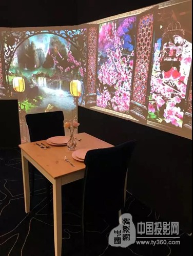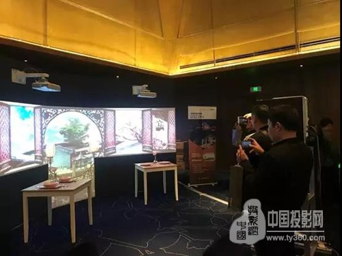 運用高端商務投影機組建出的多種解決方案中,主題餐廳方案以其精美的投影畫面及沉浸式的體驗區吸引了與會嘉賓停留駐足。應用3500lm直投式全高清短焦與4500lm激光投影機,搭建了古香古色中式餐廳,通過營造不斷變化的場景氛圍帶給現場嘉賓身臨其境的感官體驗,同時大家也紛紛拿出手機拍照,記錄下方案的整體創意。邊用餐邊享受視覺藝術盛宴,盡顯高端奢華品味,大大地提升了餐廳形象。