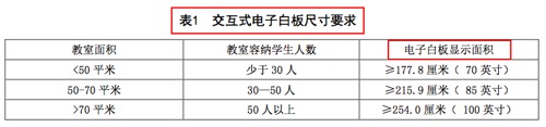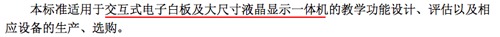 首先從教育部行標的定義來看,原文件多處明確將交互式電子白板和大屏一體機區分為兩類產品,也寫明是“交互式電子白板尺寸要求”,因此可見此處電子白板尺寸要求是不包括大屏一體機的,我們不能將電子白板和大屏一體機尺寸標準混為一談,造成錯誤的解讀。