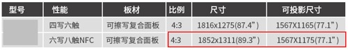 首先從真實顯示面積來看,電子白板邊由于邊框、顯示比例、功能實現等緣故,84-89吋的顯示面積大約在80吋以內,真實顯示面積遠小于產品尺寸。
