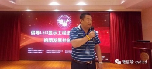 中國(guó)LED工程商聯(lián)盟理事長(zhǎng)——?jiǎng)⒑颓灏l(fā)表致辭