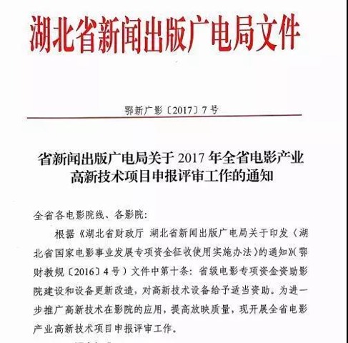 十一前夕,國家新聞出版廣電總局電影局向各省、自治區、直轄市新聞出版廣電局,中國電影發行放映協會,各電影院線公司,各電影院下發《國家新聞出版廣電總局電影局關于進一步加強影院放映技術管理的通知》,再次強調各影院要加強電影院放映技術標準的學習,嚴格執行《數字影院暫行技術要求》、《數字影院立體放映技術要求和測量方法》等規定,確保影院銀幕亮度、清晰度、色溫、均勻度、平整性,以及影廳還音響度與頻響技術指標符合標準要求。而近日,為了進一步推廣、鼓勵高新技術在影院的應用,繁榮地區電影市場,保持地區電影市場的穩定增速,湖北省近日出臺了“高新技術”資助申報的通知,對應用高新技術的影院予以一次性資助,以鼓勵影院對放映技術的升級改造,其中,中影光峰ALPD®激光熒光粉技術也在資助范圍之列。