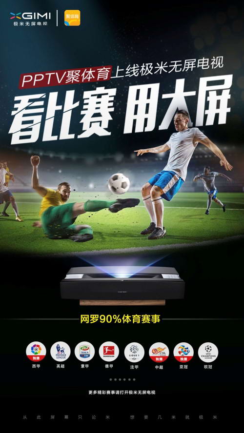 9月19日,極米無屏電視聯合PPTV聚體育打造的體育頻道正式上線,廣大極米無屏電視用戶通過自己家的無屏電視就可以收看各種令人熱血沸騰的體育賽事啦!