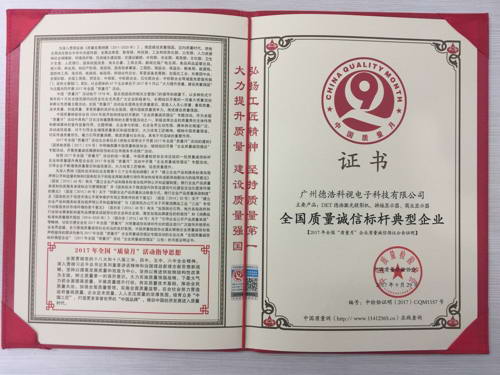 近期,DET德浩在由中國質量檢驗協會舉辦的“2017年全國“質量月”企業質量誠信倡議專題活動”中榮獲:“全國視聽/教育行業質量領先品牌、全國質量誠信標桿典型企業、全國質量檢驗穩定合格產品”榮譽稱號。