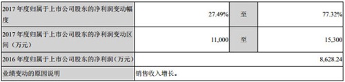 公司同時對2017年度經(jīng)營業(yè)績做出了預計: