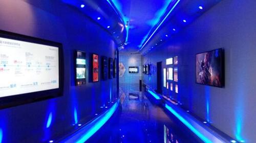 這其中,鴻合智能(HVS)為iShowroom展廳各展區配備的背景音樂、信息發布、主音響擴聲、智能中控、3D拼接融合投影顯示設備與解決方案發揮了可靠的支持作用,通過媒體播放器播放高清信號, NEC P502HL+激光投影機將融合信號投射到弧形幕布上顯示,同時配備70寸高清電視機播放出畫面;音頻方面則根據不同場景使用5.1和2.1聲道擴聲系統。5.1;全部系統由一部iPad或墻面控制屏就可自如完成中控功能,如調節投影機、視頻播放、音量等等。