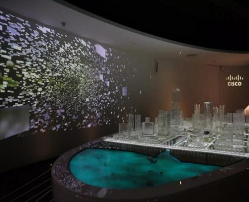 iShowroom展廳是思科基于 IoE(萬物互聯)/IoT(物聯網)思考的結晶,在1200平方米的展廳中,智慧辦公、家居、交通、制造等多個領域的前沿科技創新成果均得到了充分呈現。
