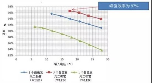 當(dāng)驅(qū)動(dòng)LED燈串時(shí),TPS54200具有較低的RDS(on)值,提供高效率。引線框上倒裝芯片(FCOL)技術(shù)可最大限度地減小模具和封裝引線之間的電感和電阻。通過(guò)其低導(dǎo)通電阻,該器件能夠高效(97%的峰值效率)運(yùn)行,并保持監(jiān)控?cái)z像頭的功耗盡可能低。參見(jiàn)圖2。