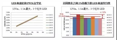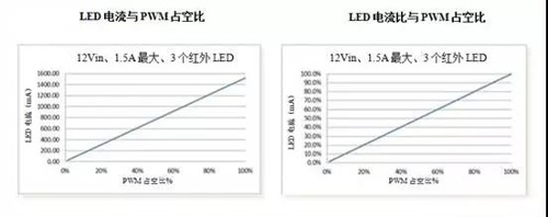 TI設(shè)計(jì)了TPS54200的模擬調(diào)光功能,具有極佳的精度,使通過(guò)LED的電流與具有良好線性度的脈寬調(diào)制(PWM)占空比成正比,具有良好的線性度。請(qǐng)參見(jiàn)圖3。因此,您可以使微控制器單元(MCU)產(chǎn)生比通過(guò)直流電壓的典型調(diào)光更高精度的PWM脈沖。
