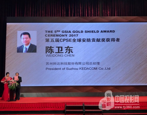 科達總經理陳衛東憑借扎根安防行業多年的成就與貢獻,榮獲“全球安防貢獻獎”。