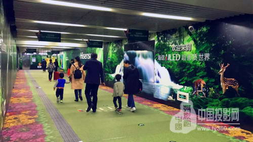 近日,北京地鐵4號線中關村站通道綠意滿滿,海信結合ULED超畫質電視,將地鐵通道打造成為熱帶雨林景觀,讓過往乘客有一種身臨其境的感覺。