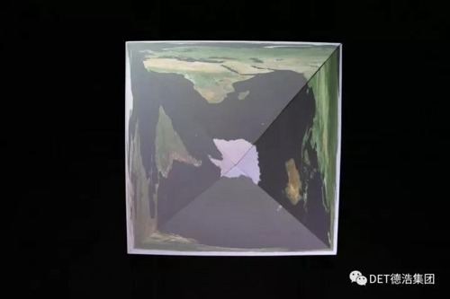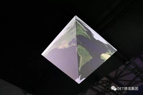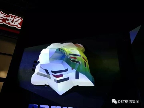 現(xiàn)場(chǎng)可以看到,DET給我們帶來了金字塔造型的異形秀,只用了2臺(tái)8500流明的DET-S85U投影機(jī),便完成了底邊1.5米,高為1米的四面體金字塔造型的投影。