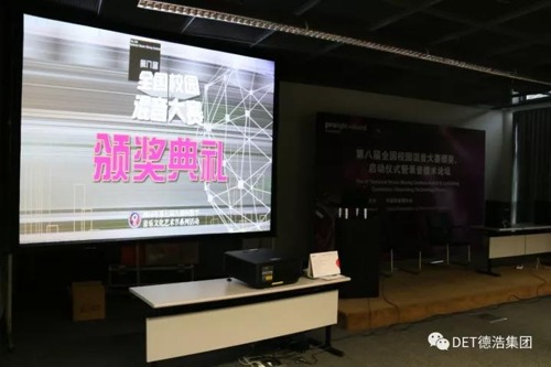 而本次DET更是作為主辦方的投影機(jī)贊助商,支持解決了主辦方4套方案的應(yīng)用,F(xiàn)場(chǎng)分別用了DETS系列(6500-10000流明)投影機(jī)投影主會(huì)場(chǎng)聚賞時(shí)刻的長(zhǎng)4米,寬3米的畫面;以及其他3個(gè)會(huì)議室分別100寸、120寸、150寸的投影幕。這不僅說明業(yè)界對(duì)DET德浩的關(guān)注度不斷提高,也證明了DET值得信賴。