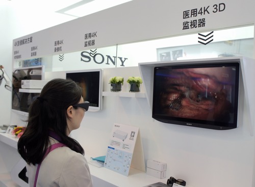 在4K影像解決方案展區(qū),索尼利用4K術(shù)野攝像機(jī)MCC-S40MD、55英寸4K液晶監(jiān)視器LMD-X550MC、4K錄像機(jī)HVO-4000MT、4K播放器PMW-PZ1等設(shè)備,組建起從信號(hào)采集、畫面監(jiān)看,到信號(hào)傳輸、影像錄制的完整4K鏈條,從而為醫(yī)療用戶提供端到端的手術(shù)室4K解決方案。同時(shí),利用純熟的IP傳輸技術(shù)及終端,4K畫面可通過光纖進(jìn)行遠(yuǎn)程轉(zhuǎn)播,遠(yuǎn)端觀眾可輕松獲得手術(shù)室內(nèi)的實(shí)時(shí)4K畫面和音頻內(nèi)容。