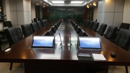 該項目主要安裝了TENON(騰中) 15.6寸向上翻轉(zhuǎn)觸控一體機21臺, 話筒升降器21臺, 無紙化會議終端20臺,數(shù)字會議控制主機1臺,數(shù)字編解碼器1臺,數(shù)據(jù)交換中心1臺,16路音頻矩陣2臺,中央控制器1臺,8路混合矩陣1臺,無線路由1臺等。通過這些設(shè)備,實現(xiàn)對無紙化智能會議系統(tǒng)的有序控制,方便快捷。