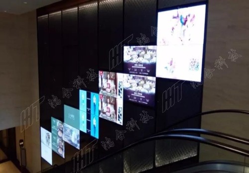 據悉,鴻合智能(HVS)為全商場5個樓層部署了45臺LCD顯示屏,其中 7臺55寸顯示屏為顧客提供觸摸查詢導購,另有7臺安置在電梯轎廂中,全方位的顯示各商鋪地圖位置,幫助顧客方便查詢去向;在商場南北區,鴻合智能(HVS)部署了28臺扶梯55寸拼接屏,以異型拼接的方式,讓顧客在美景中漫步,帶來更佳的視覺享受。