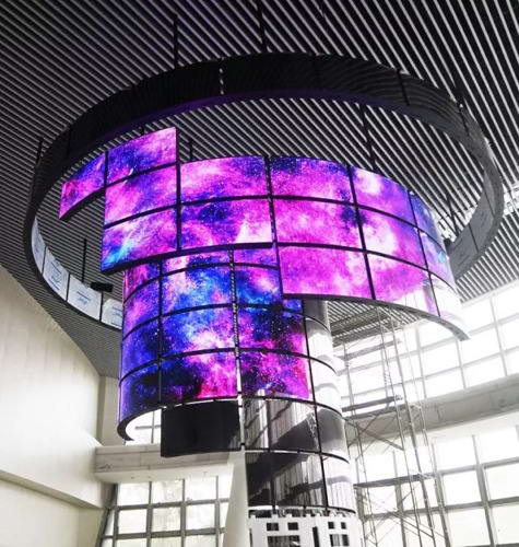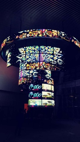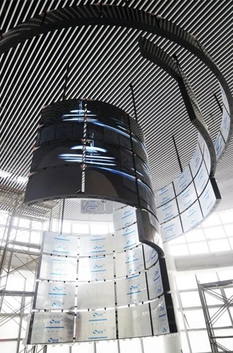 LG 55EF5C是一款開放型的OLED曲面拼接顯示器,利用OLED柔性屏幕的特點,具有向外凸顯和向內凹陷的兩種造型,可以滿足客戶更多的創(chuàng)意設計。華數(shù)產業(yè)園項目正是看中了 LG 55EF5C的這個特點,通過LG打造出一個強大而震撼的信息發(fā)布平臺,在國內獨占風頭。整個造型分為3層環(huán)形,最大半徑為4.5米,最小半徑為2米,錯落有致的拼裝十層屏幕。而OLED兩層結構的輕薄機身,僅用最低限度的支撐便可懸掛于天花板上,整體造型既輕盈而又充滿了科技感。同時,該項目利用LG特有的webOS系統(tǒng),實現(xiàn)整體拼接屏幕視頻內容的同步播放,方便管理的同時有效降低采購成本和運營成本。