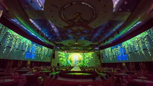 嘉興某酒店考慮到全息4D宴會廳不僅要保證清晰絢麗的呈現效果,還要滿足客人們多樣的個性化定制需求。酒店采用的20臺愛普生CB-G7100工程投影機可以進行360°安裝,實現多角度投影的同時而不損失圖像亮度;再搭配步進式電機調節電動鏡頭,不僅讓安裝投影機的位置變得更靈活,也讓使用者在進行邊緣融合和疊加等操作時,可以更精確地調整畫面;輕松實現原始森林、海底世界、浪漫花海等各種場景的切換,滿足客人們定制化、多變性的需求。