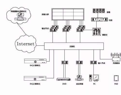 互聯(lián)互通、可視化操作是分布式系統(tǒng)的一大特點。它可以將任意輸入節(jié)點的信號輸出到任意輸出節(jié)點上,即可通過電腦控制,也可通過PAD控制,可實時預覽所有信號源、控制大屏、燈光、空調(diào)等開關功能,只需一鍵即可實現(xiàn)所見即所得。