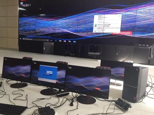 下圖為現(xiàn)場KVM坐席協(xié)作臨時調(diào)試:成功實現(xiàn)了用任意一臺電腦鍵盤鼠標跨屏漫游、可接管其他電腦,可將任意一臺電腦畫面推送給其他電腦或者大屏。