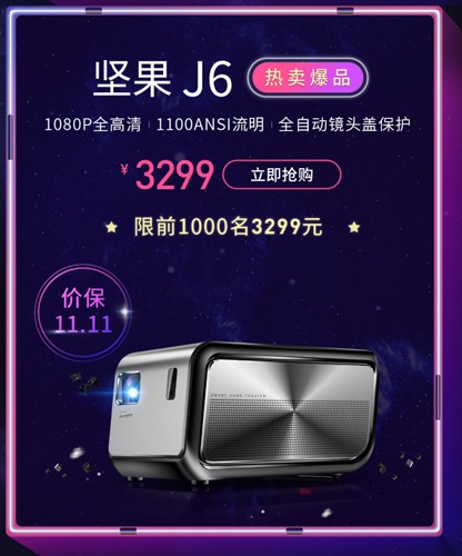 在品牌日,堅果紳視J6限量1000臺以3299元的價格供應,完全要靠搶的節奏。鏈接奉上:https://item.jd.com/3969267.html。