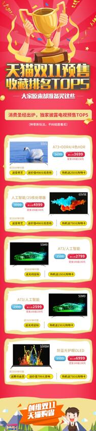 一起走進今年的天貓雙11預售現場,看下創維電視的TOP5都是哪些神機。