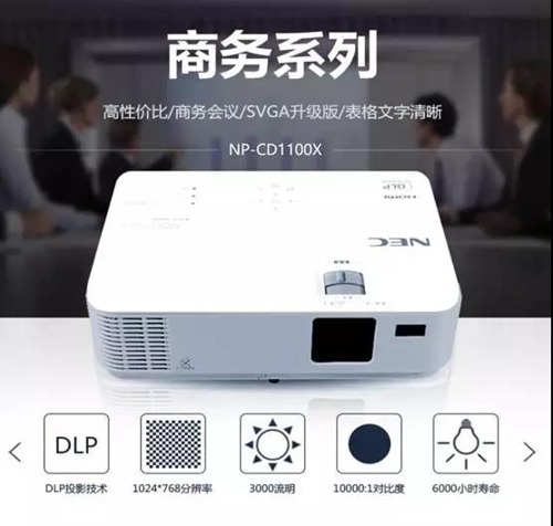 CD1100X是一款DLP顯示技術的商務投影機,具備3000ANSI流明亮度,分辨率可達到1024×768,擁有10000:1高動態對比度,色彩表現數目達到10.7億色。此外,還支持±40°垂直梯形校正,能夠更好地投射、調節出影像畫面。