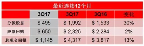 “在過去12個月中,通過股票回購和分派股息,我們給股東們的回報達到43億美元。今年9月,TI宣布將其股息提升24%,同時增加了60億美金的股票回購授權,這一切都體現了我們將所有自由現金流回報給股東的承諾。