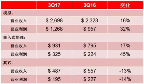 “在我們的核心業務中,較去年同期相比,模擬產品的營業收入增長16%,嵌入式處理產品的營業收入同比增長17 %。兩項業務的營業毛利均有所提高。