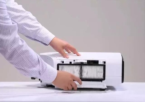 其次,把過濾網輕輕敲4-5下,抖落灰塵,然后使用真空吸塵器吸除剩余灰塵。