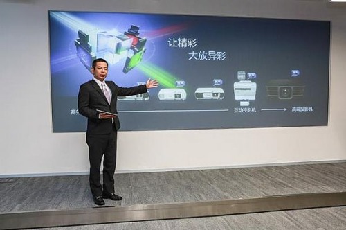 隨后,愛普生(中國)有限公司打印機與投影機市場高級總監石橋響介先生分別從表現力、競爭力、環保力和生產力,闡述了“集智入微”給視覺領域帶來的積極影響,并概述了在 “科技+本地化”策略下,愛普生投影機針對中國客戶的需求推出一系列愛普生創新產品及解決方案。