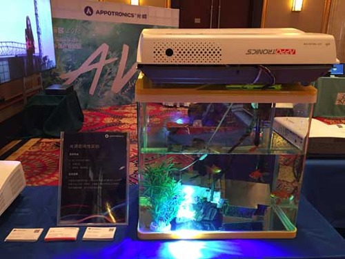 現(xiàn)場(chǎng)為了證明全密封光機(jī)的密封性,把光源光機(jī)放入了水中,沒(méi)有水滲入內(nèi)部、不漏光、不漏電,整機(jī)仍然可以正常發(fā)光。
