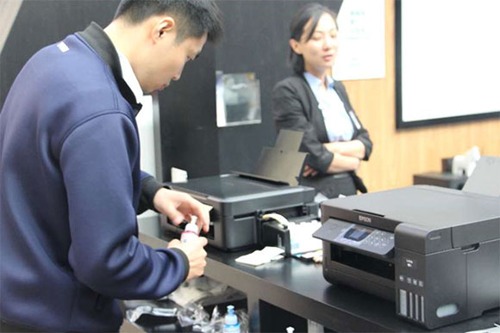 巡展現(xiàn)場還出現(xiàn)了有趣的一幕:有幾位家長利用新品墨倉式®L4168全新彩色多功能一體機(jī)進(jìn)行手機(jī)直連,給孩子打印起了家庭作業(yè)和孩子萌照!原來,現(xiàn)在的老師布置作業(yè)都是發(fā)到微信群和郵箱。以往打印作業(yè)都需要先從手機(jī)導(dǎo)入電腦,很麻煩。現(xiàn)在,用手機(jī)直接操作打印,真是方便極了!